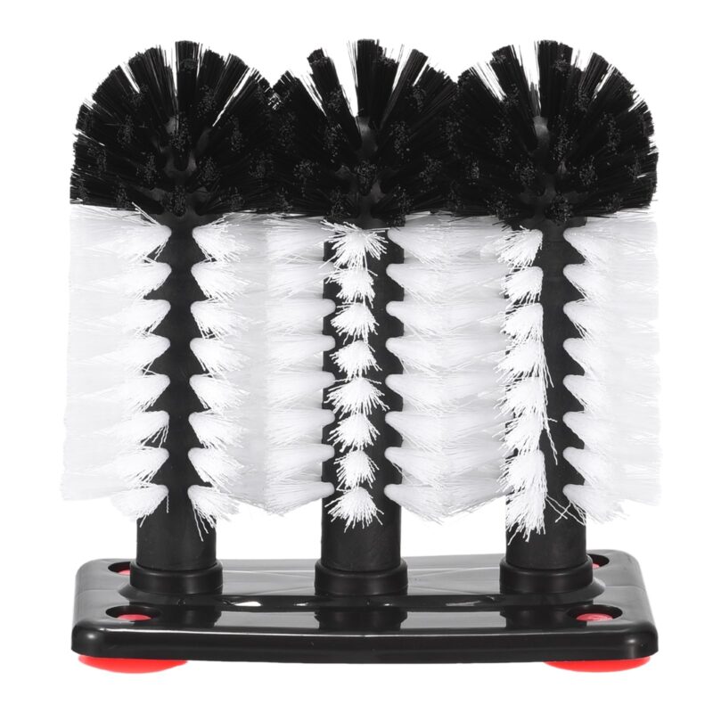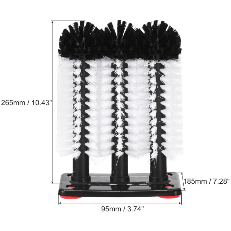 Brush Up Cup Brush, 1pcs Triple Head with Red Suction Cup Black White