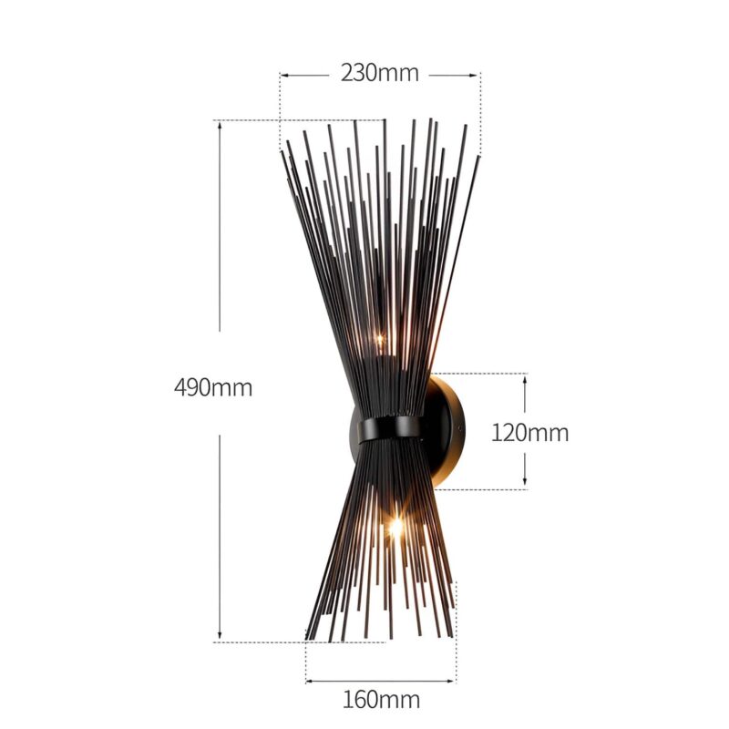 Duo Wall Scones Light Metal Spike Wall Sconce Black Color (Set of 2)