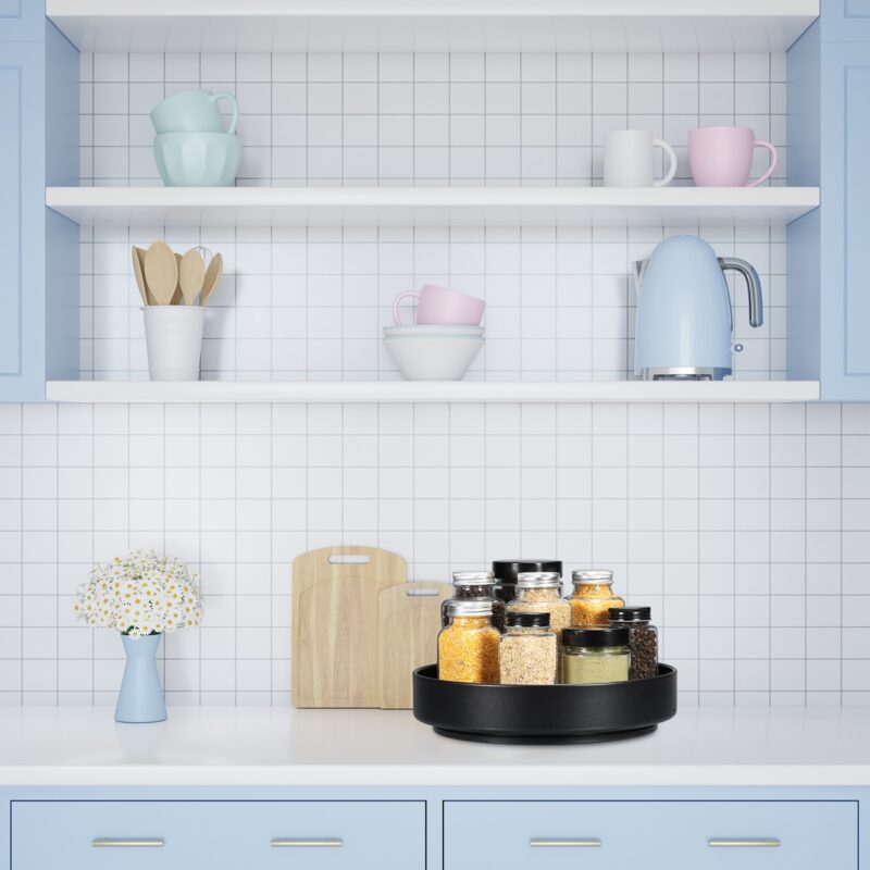 Lazy Susan Organizer Rotating Spice Rack Turntable for Kitchen Cabinet – Black