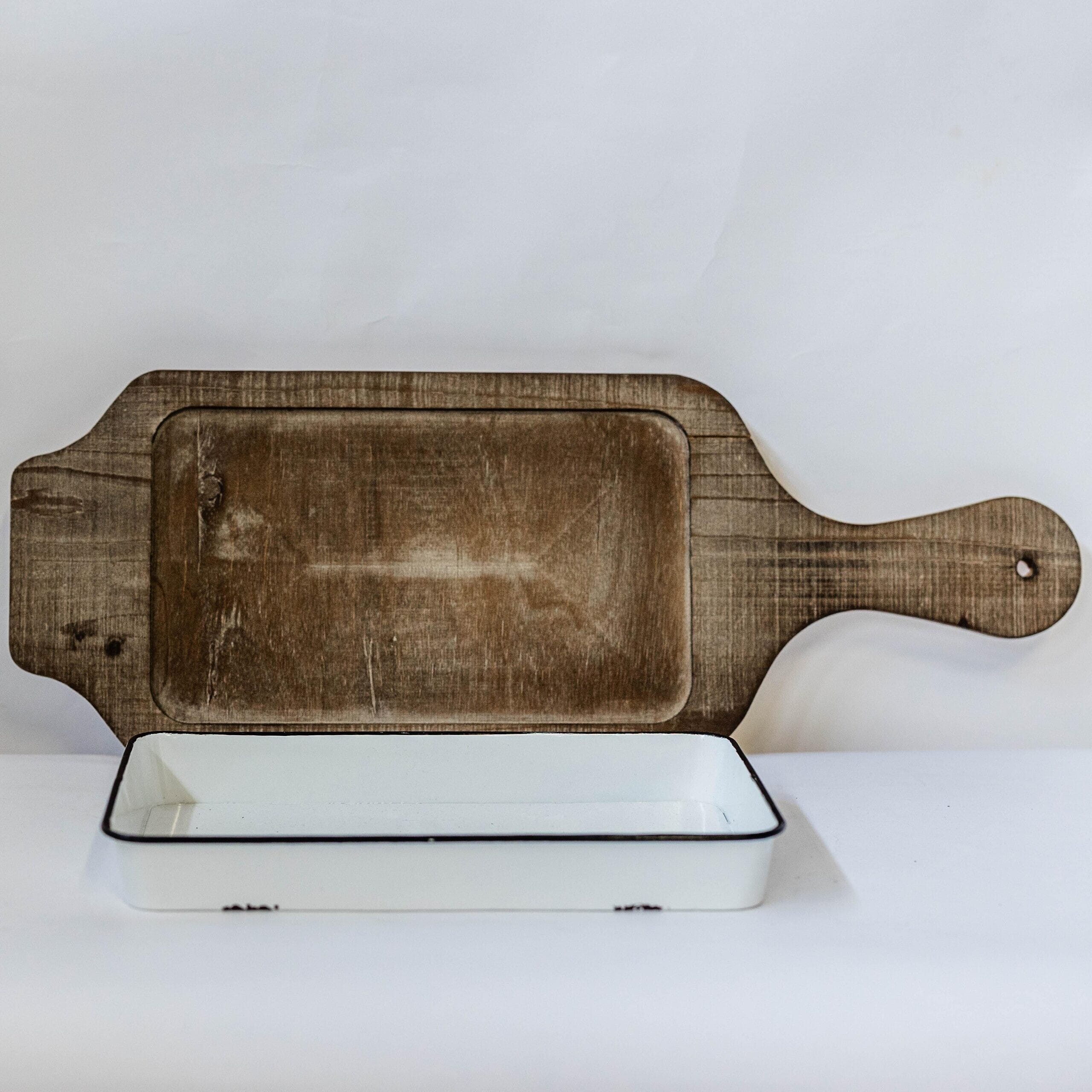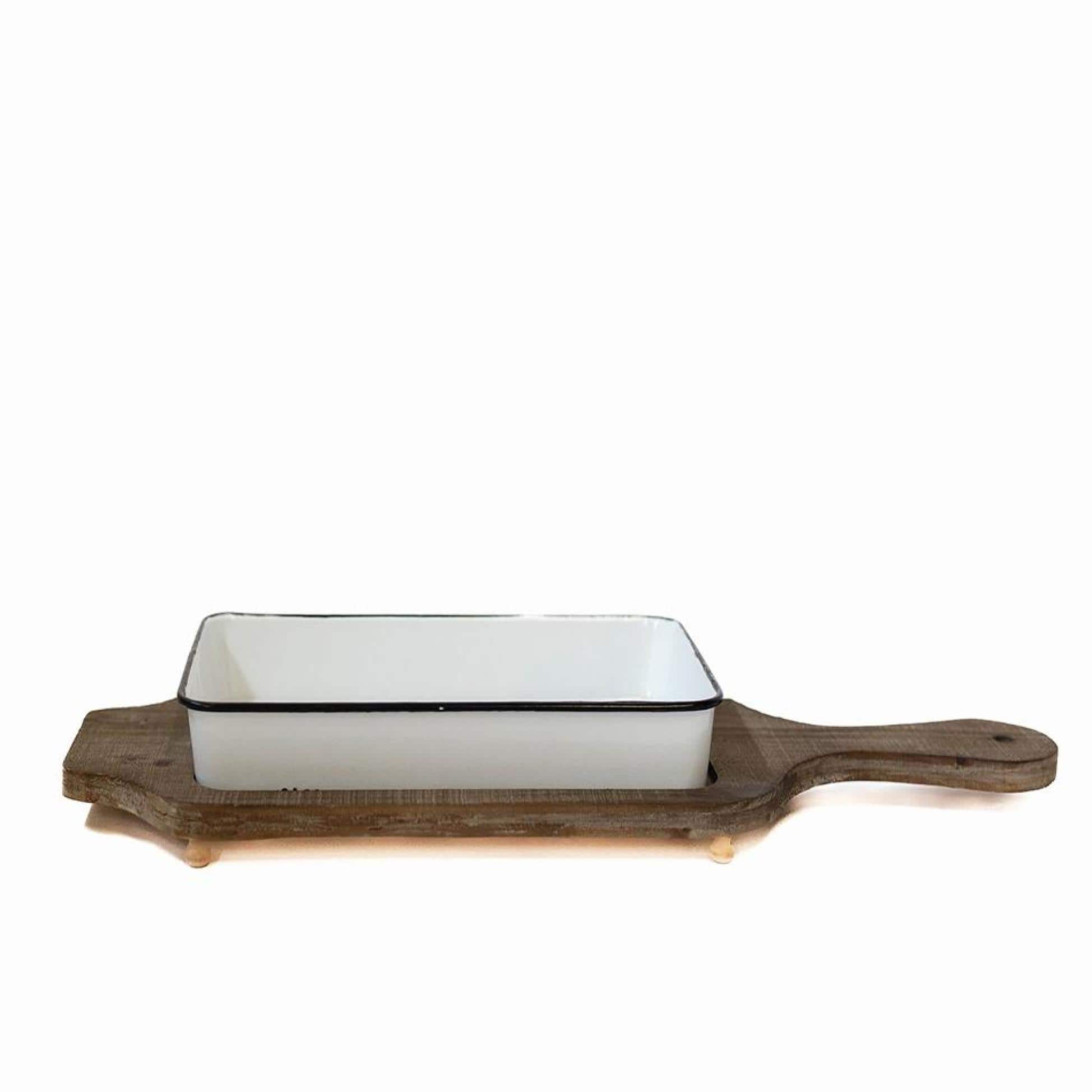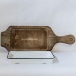Rectangular White Platter And Wooden Tray