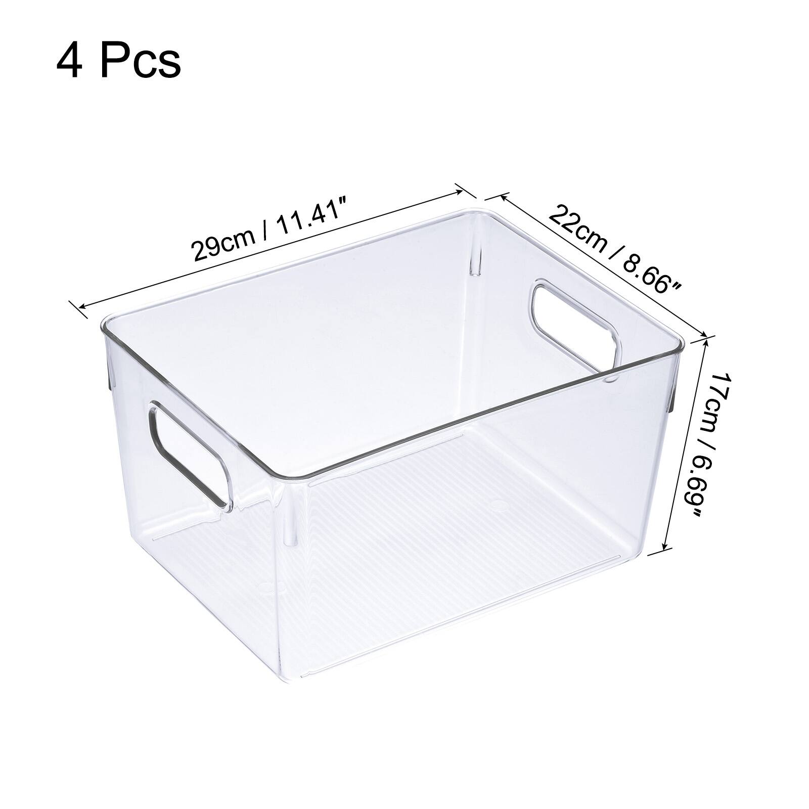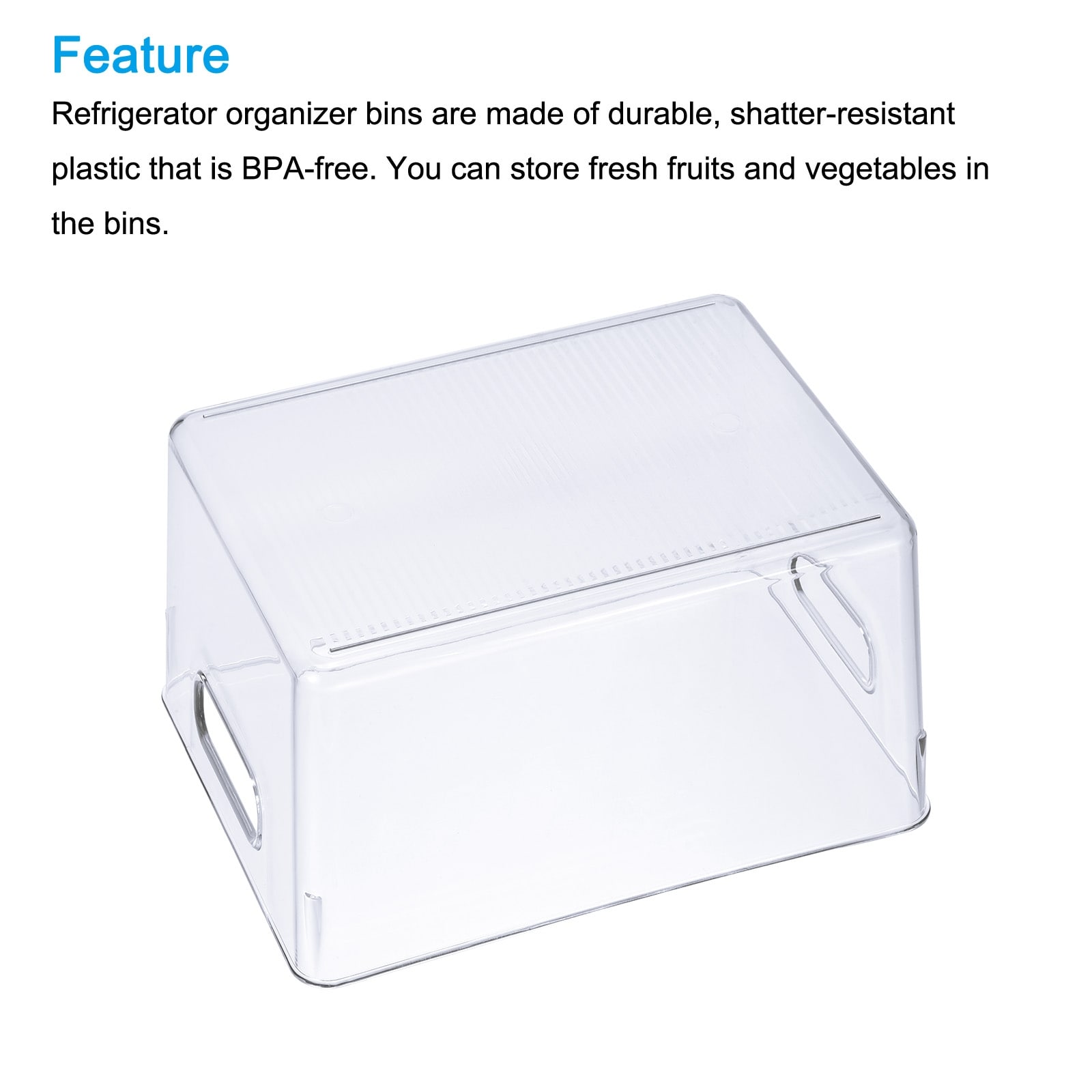 【Refrigerator Organizer Bins】: Stackable fridge organizer helps you store fruits, vegetables, and meat in the fridge, freezer, or on deep pantry shelves. Enough pieces to avoid a messy but organized kitchen! 【Quality Material】: Fridge organizer bins are made of durable PET material. Please note that do not put these organizer bins in the dishwasher and do not be used for any heating. 【Stackable Storage】: Easily stack same size organizer bins on top of one another or use them side by side to keep items sorted. These stackable organizer bins maximize storage space in the refrigerator, freezer, cabinets, cupboards, pantry shelves, or inside drawers. 【Portable Design】: Clear organizing bins display products and make items easy to find. Built-in, easy-grip side handles make it easy to transport from shelf to table or island; Organize all of your kitchen essentials and create handy go-to supply baskets to make organizing and everyday living a little easier; 【Multi-use Organizer Bins】:Our multi-functional storage bins can not only be placed in refrigerators, freezers, for storing vegetables, fruits, eggs, milk, meat, and drinks., etc. They are also very suitable for use on countertops, bedrooms, bathrooms, cosmetics, and any small items in life. Keep items contained, organized, and dust-free. Why You Choose It?Make Storage and Organization Easy: Stackable Refrigerator Organizer Bins Great for refrigerator or pantry; Maximize storage space in the refrigerator, freezer, cupboards, pantry shelves, or inside drawers Refrigerator organizer bins are made of durable, shatter-resistant plastic. You can store fresh fruits and vegetables in the bins. Those storage bins Keep your refrigerator, freezer, countertops, kitchen, or pantry neatly organized. The clear organizer bins make us can see what’s inside for an instant, highly recommend putting some small items that is always missing. The fridge bins with handle also can be as a tray to carry small things or display cupcakes at the party. Specification: Size: 11.41 x8.66 x6.69 inch Color: White Material: PET Net Weight: 2299Gram Package Content: 4 x Stackable Refrigerator Organizer Bins Due to the light and screen setting difference, the item’s color may be slightly different from the pictures. Please allow slight dimension difference due to different manual measurements